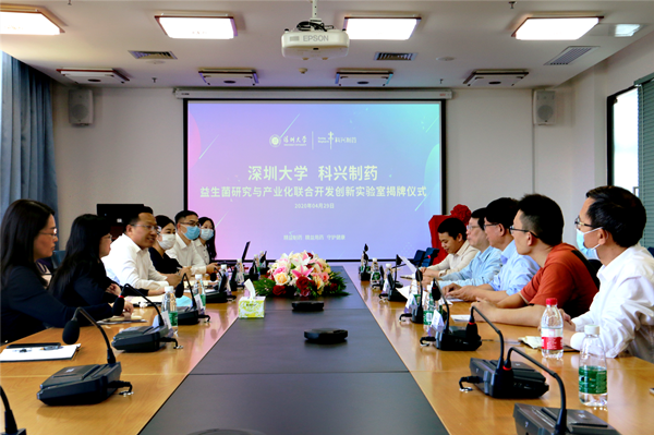 4月29日下午,深圳大學(xué)-科興制藥益生菌研究與產(chǎn)業(yè)化聯(lián)合開發(fā)創(chuàng)新實(shí)驗(yàn)室揭牌儀式在深圳大學(xué)醫(yī)學(xué)部會(huì)議室順利舉行。深圳大學(xué)醫(yī)學(xué)部主任朱衛(wèi)國、深圳大學(xué)過敏反應(yīng)和免疫學(xué)研究所所長劉志剛、科興制藥總經(jīng)理趙彥輕、副總經(jīng)理馬鴻杰等出席了揭牌儀式。