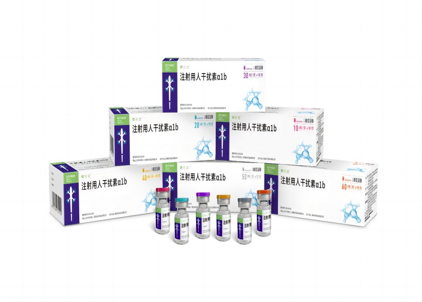 【成份】本品主要成份為重組人干擾素α1b,系由含有高效表達人干擾素α1b 基因的大腸桿菌,經(jīng)發(fā) 酵、分離和高度純化后凍干制成。