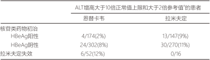 表4∶在Al463022、Al463027和Al463026研究中,核苷類藥物初治患者在停藥后隨訪期發(fā)生的肝炎惡化